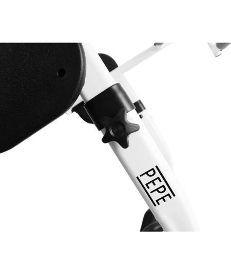 El usuario debe colocar los brazos en las barras acolchadas y tomar impulso para levantarse, apoyando la parte delantera de las piernas en las espinilleras.