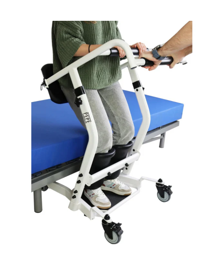 La silla de transferencia ayuda a la transferencia de personas que tengan problemas de movilidad en las piernas. Además, cuenta con unas espinilleras acolchadas para mayor sujeción.
