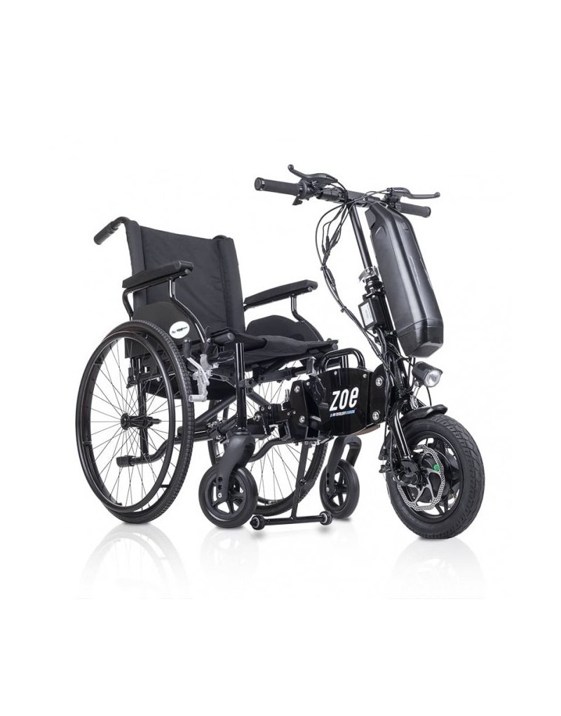 El handbike Zoe es un reducido accesorio para la silla de ruedas manual que proporciona libertad y velocidad a la hora de desplazarse por exteriores.